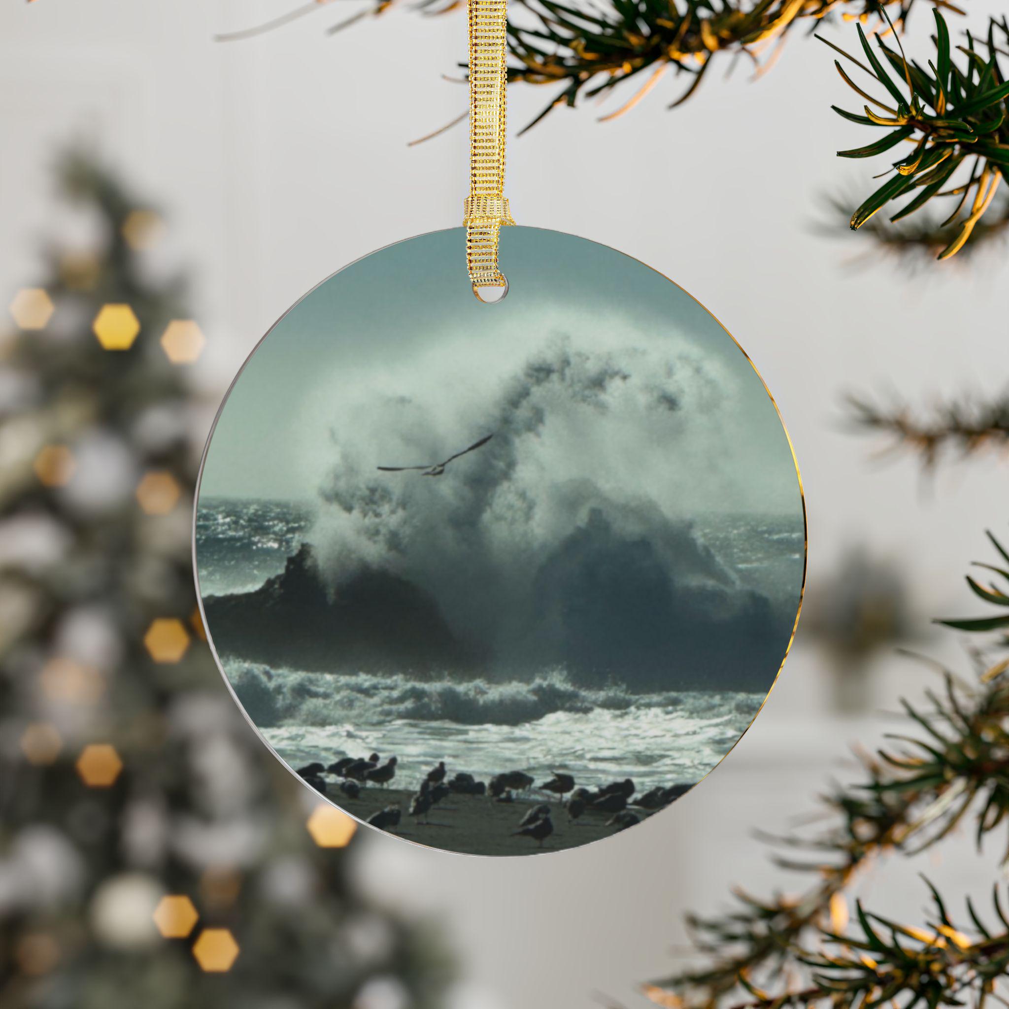 Beautiful ornaments featuring birds of the ocean taking flight along the waves, giving a serene and peaceful vibe. Perfect for nature lovers and ocean enthusiasts, ideal for decorating Christmas trees or as thoughtful gifts for the holiday season.